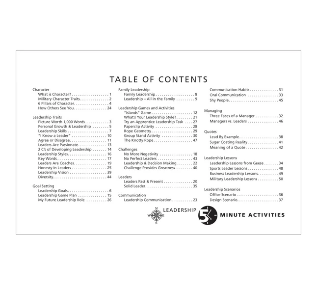 Visualz 5 Minute Leadership Activities are quick, easy, and effective activities to break the ice, fill extra minutes of class time and get students excited to learn! Each activity is calculated to last 5-10 minutes. The activities are a great way to introduce lessons, reinforce earlier learning, or used as conclusions to leadership education lessons. Each activity can be a creative and fun learning experience for students that allows them to get thinking about these topics: leadership qualities, achievable goals, motivation, and developing leadership. 8-1/2 in x 5-1/2 in spiral bound book. .