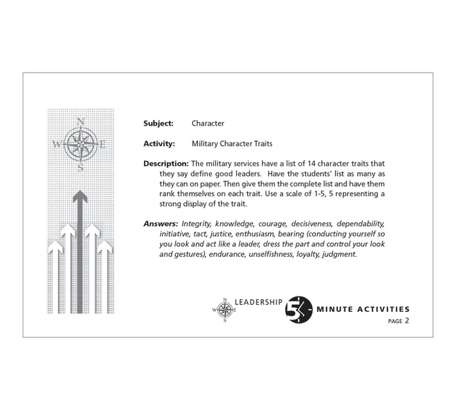 - Each activity can be a creative and fun learning experience for students that allows them to get thinking about these topics: leadership qualities, achievable goals, motivation, and developing leadership