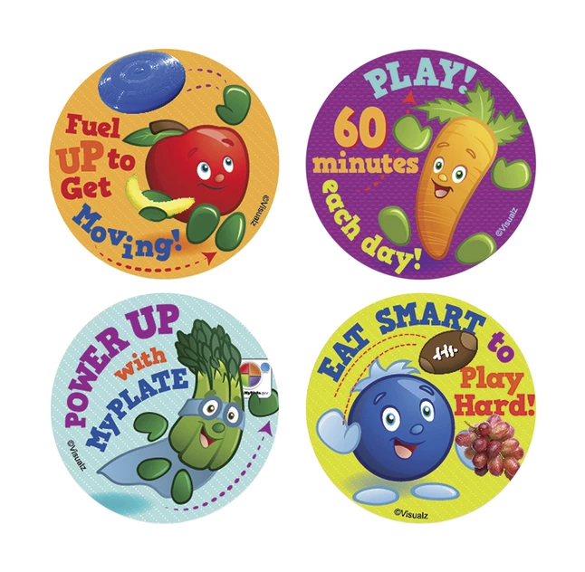 - MyPlate stickers with positive health message text offer a fun way to promote and reward kids’ healthy eating/exercise habits
