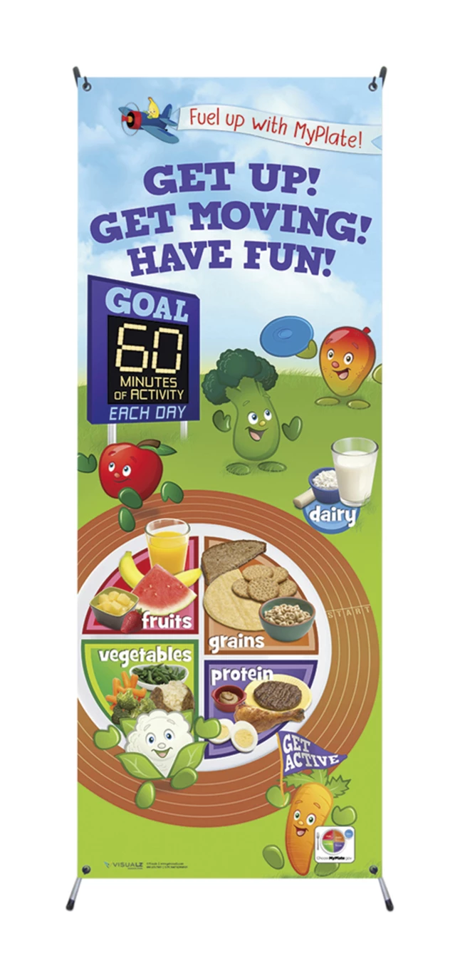 - MyPlate display banner is a fun, easy, and educational way to teach kids about healthy habits and lifestyle