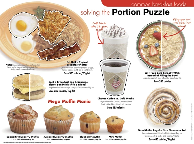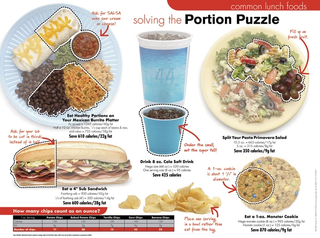 Visualz “Portion Puzzle” Poster Set of 4 includes Breakfast, Lunch and Dinner posters as well as a Compilation poster. Poster set ideal for grades 6 – adult has common meals as well as snacks, beverages and desserts. Portion sizes have been increasing over the years and each poster provides tips to make healthy portion choices. Poster has correct portion sizes that are outlined like puzzle pieces to make it easy to view what one serving looks like. .